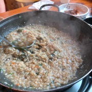 닭은 다 먹으면 직원분께 말씀드리면 누룽지로 죽을 끓여줍니다. 육수에 한방재료가 많이 들어가서 그런지 진하고 건강한 맛!죽이랑 묵이 제일 맛있었어요. 디저트 죽은 부족하면 7,000원에 추가 주문도 가능합니다.