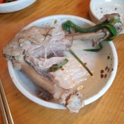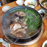 한능이 토종닭백숙(4명, 1마리 반, ο 90,000) 조카가 오골계를 보면 안 먹는다고 할까봐 닭백숙을 선택했습니다. 토종닭이라 그런지 크기가 정말 컸어요.